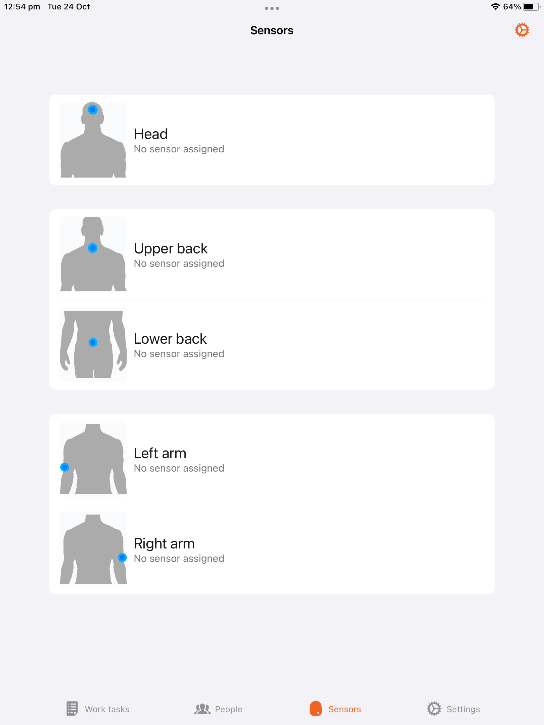 The Sensors tab will show which body region sensors are not yet assigned.